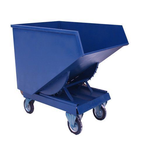 Наличие в конструкции контейнера самоопрокидывающегося колесных опор, две из которых поворотные с тормозом, позволяет легко перемещать изделие без груза к месту его установки без использования специальных грузоподъемных механизмов.