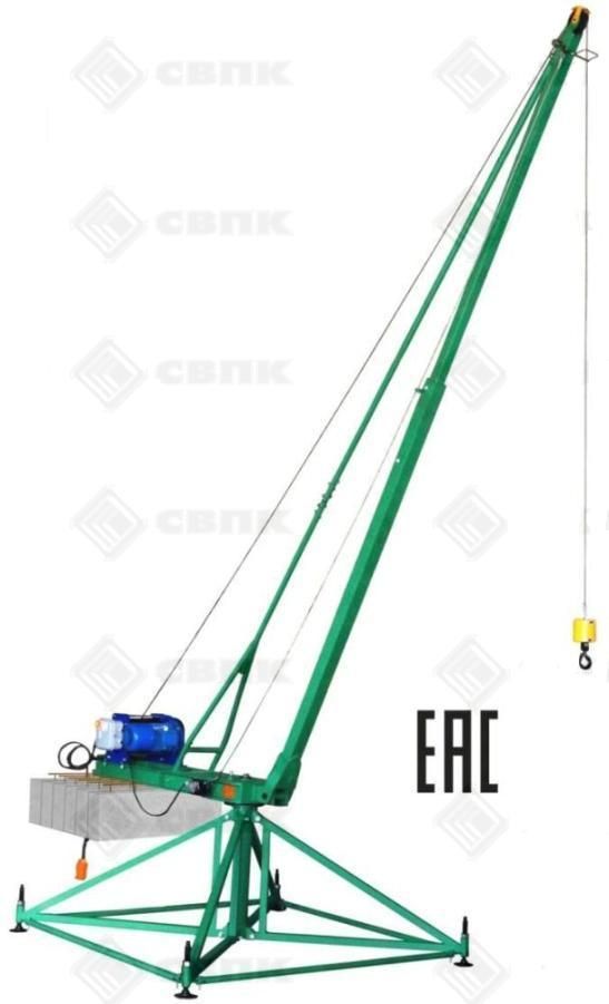 Кран стреловой поворотный КСП-320 Мастер является грузоподъемным механизмом, который монтируется непосредственно на месте эксплуатации. Площадка, на которой установлен кран, должна иметь уклон не более 3°. Если уклон больше, то кран необходимо выставить при помощи опорных домкратов крана.
