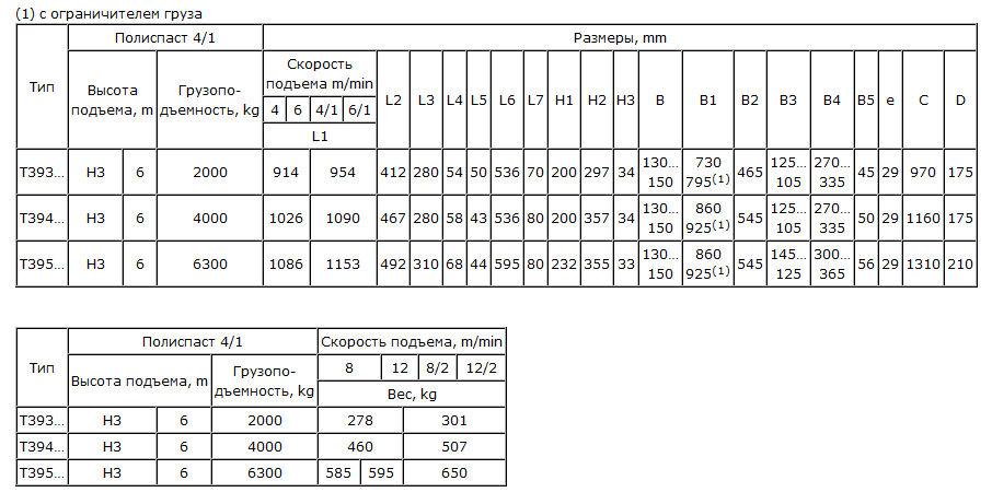 Таль электрическая канатная Т 39 (2т 6м)