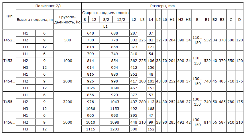 Таль электрическая канатная Т 45336 (1т 12м)