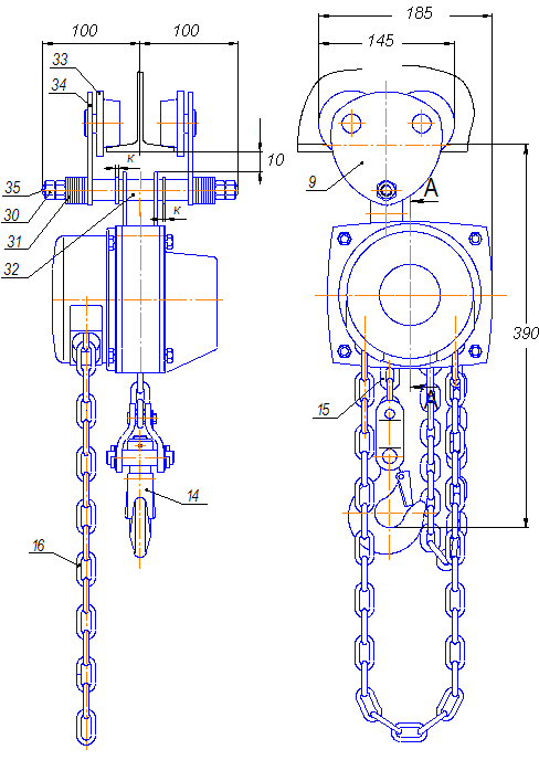 Таль ручная шестеренная цепная ТРШАп-0,5/9