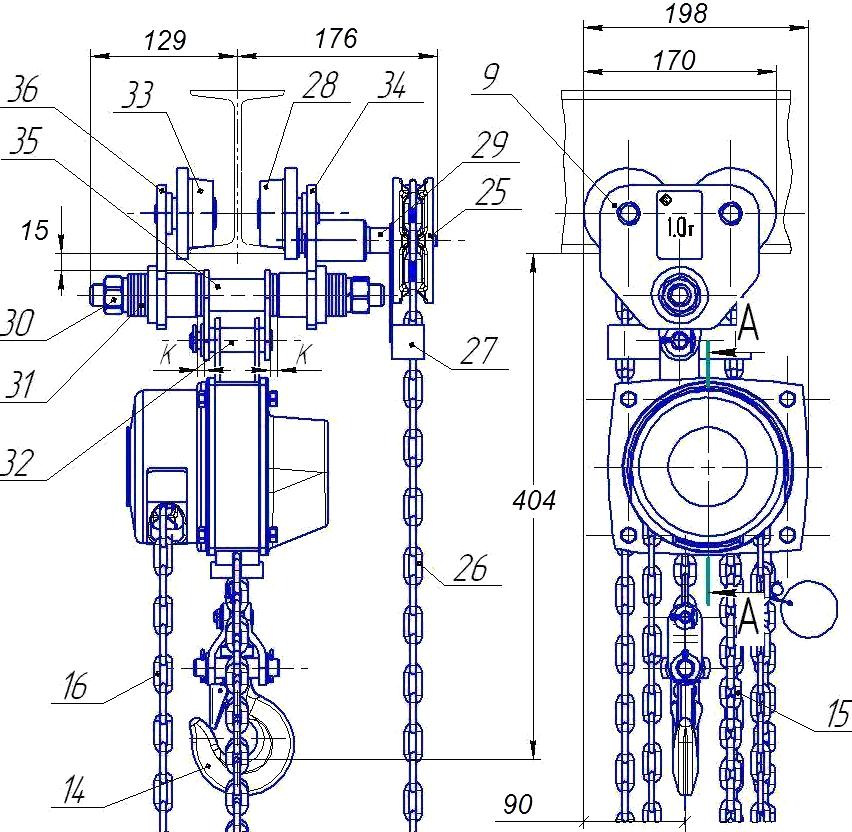 Таль ручная шестеренная цепная ТРШБп-1/12