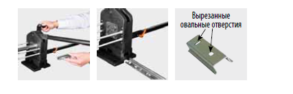 Резак GLR 6 имеет 4 отверстия для резки разных типов DIN рейки. С помощью длинной механической ручки осуществляется резка или пробивка отверстий. Устройство укомплектовывается линейкой, с помощью которой уменьшается время для подготовки операции реза или пробивки отверстий. Резак и сами ножи GLR 6 изготовлены из высококачественной стали, что повышает качество реза, пробивки отверстий и повышает запас прочности. По желанию клиента можно изготовить инструмент GLR 6 под разные профили как стандартных так и не стандартных DIN реек. Резка устройством GLR 6 происходит без отходов.